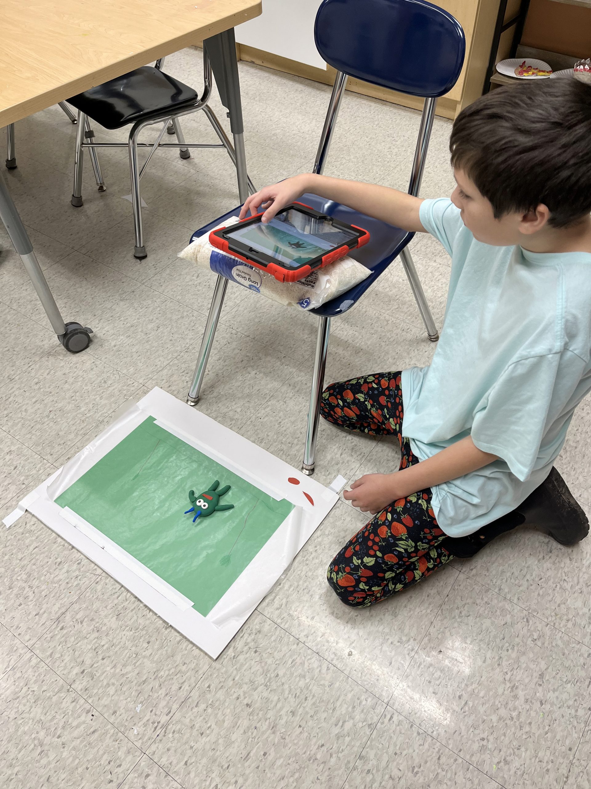 For example, Lucien wanted to make a stop motion film because he loves Claymation. He worked with Sandy to come up with a story, create a figure, and shoot a 10-second short film using stop motion techniques.